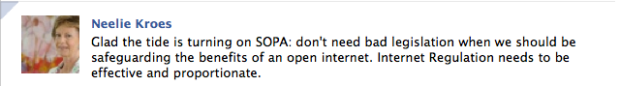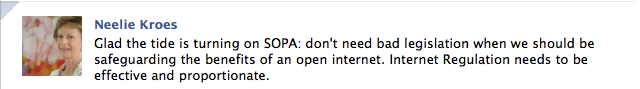P.s.: Il Commissario Responsabile dell’Agenda Digitale europea Neelie Kroes “is glad” on Facebook in merito alle proteste di ieri